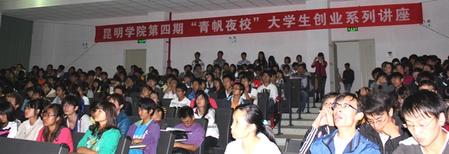10月20日晚,由校团委和招生就业处主办,学生社团联合会承办的昆明学院第四期“青帆夜校”大学生创业系列讲座第一讲在博雅楼3101教室开讲,我校300余名师生参加了此次讲座。