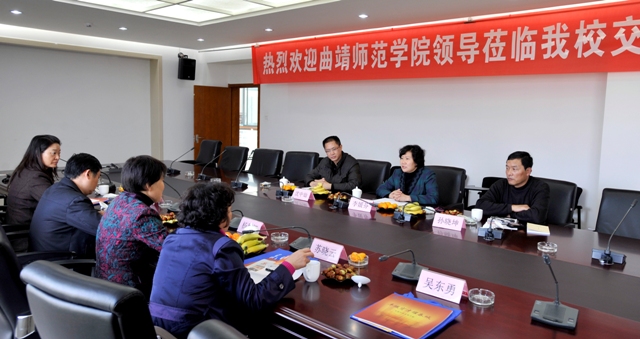 10月21日下午,曲靖师院党委副书记杨思娅率宣传部部长钱润光、工会主席苏晓云、离退休处朱丽萍科长等一行到我校参观交流。我校党委副书记、纪委书记李媛芬、宣传部