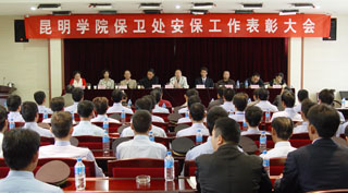 为表彰本学期在校园安全保卫工作中表现优秀、成绩突出,为校园的平安建设做出积极贡献的保安人员,9月23日上午,保卫处在办公楼502会议室召开昆明学院保卫处安保工作表彰大会。保卫处主持工作副处长方永昆、副处长吴向东、副处长孙丽,保安公司经理李昌啟,保卫处干部、保安、学生治安服务队共80余人参加了表彰大会。会议由孙丽副处长主持。