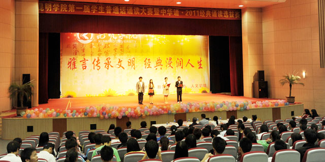 昆明学院首届学生普通话诵读大赛暨“中华诵2011经典诵读选拔赛”于9月16日下午在学生会堂隆重举行。