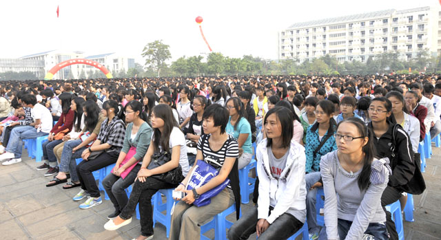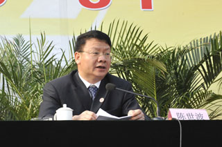 首先,校长陈世波代表学校全体师生员工向新同学表示热烈欢迎和诚挚祝贺!向辛勤培育他们的老师、家长和朋友,表示衷心感谢!随后,陈校长回顾了学校成立以来,在上级党委、政府的领导下,全体师生员工振奋精神、团结拼搏,为学校的建设、改革和发展走过的奋斗历程;总结了学校在教学、科研、服务社会和传承文化等方面取得的突出成绩;明确了学校的办学理念和办学定位;强调了学校在“十二五”期间的奋斗目标、工作任务和具体要求。同时,陈校长对全体新同学提出了4点殷切希望:希望大家学会沟通和理解;希望大家学会适应新的环境;希望大家志存高远、胸怀宽广;希望大家珍惜时间、有所作为。