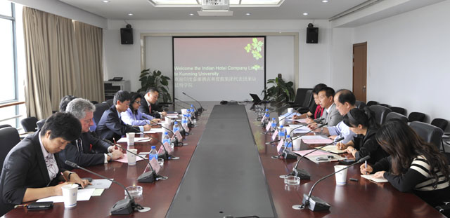 李翔副校长首先来访一行介绍了我校的基本情况及其办学理念,表达了昆明学院希望与泰姬酒店及度假集团进行交流与合作的意愿,特别就酒店管理、烹饪专业、互派学生、互派教师项目、增设奖学金等相关问题进行了深入探讨。Abhijit Mukerji先生也介绍了泰姬酒店及度假集团的基本情况,并表示非常荣幸能有机会与昆明学院合作交流。