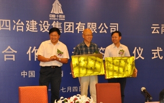 7月4日,我校与十四冶建设集团有限公司、云南省设计院举行了“昆明学院 十四冶建设集团有限公司 云南省设计院 校企产学研合作协议签字仪式”。云南省设计院院长李光熙,院党委书记苏跃、副书记张燕,副院长林涛及相关部门负责人;十四冶建设集团有限公司董事长、党委书记宁升功,总经理邱录军,党委委员、董事廖启迅,党委副书记、纪委书记袁淑文及相关部门负责人;我校党委书记梁晓谷,校长陈世波,副校长熊晶、罗明东,城乡建设与工程管理学院、教务处、科研处、校办相关负责人参加了签约仪式。