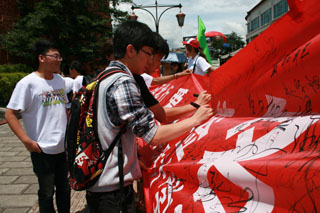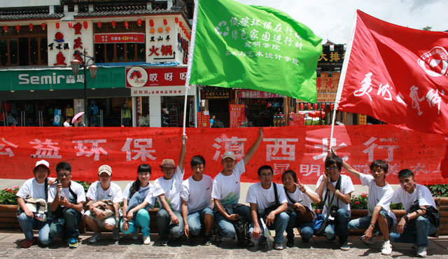 | 7月,院团总支在校团委的号召下,组织了暑期三下乡系列活动。 活动涉及“低碳环保宣传”、“支教、捐赠”、“学术调研、考察”、“专业写生”等几个大项。 三下乡队伍一行十四人在到达丽江的第一天就在丽江古城开展了以“庆祝建党九十周年公益环保滇西北行爱心签名”的环保主题签名活动。活动在丽江古城管委会的大力支持下顺利开展,受到了过往行人、各地游客和国际友人的积极响应,引起了当地媒体的关注,丽江日报和丽江新闻都对此次活动进行了报道,产生了良好的社会反响,积极的宣传了昆明学院,展示了昆明学院师生关注社会、热心投身公益事业宣传的良好形象。