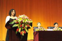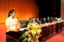 云南省优秀毕业生、外国语学院王悦同学家长滇池国家旅游度假区金敏艾代表毕业生家长作了发言,她对学校和老师的辛勤培育表示感谢,对学校的快速发展表示赞叹,并祝愿学校各项事业蒸蒸日上!