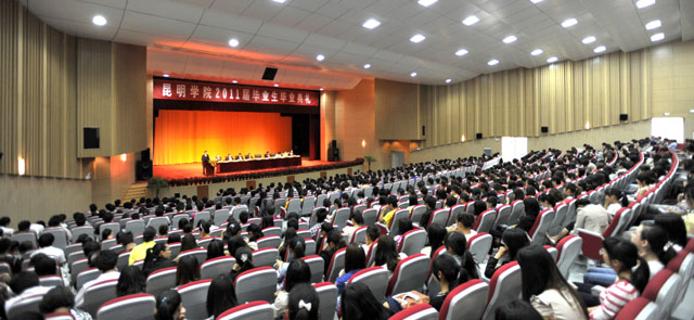 | 6月20日早上,昆明学院2011届毕业生毕业典礼在新落成的学生会堂举行。典礼分本科和专科两场举行,全体校领导、中层干部、各院系辅导员、毕业班班主任以及2011届毕业生参加了典礼。典礼由熊晶副校长主持。