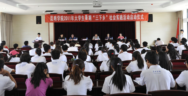 根据中宣部、中央文明办、教育部、团中央和全国学联“关于组织开展2011年全国大中专学生志愿者暑期文化、科技、卫生‘三下乡’社会实践活动”精神和省委宣传部、省文明办、省教育厅、团省委、省学联《关于2011年云南省大中专学生志愿者暑期“三下乡”社会实践活动的通知》要求,我校团委积极组织,周密部署,紧紧围绕“永远跟党走 青春献祖国”的主题,遵循讲求实效、就近就便、针对性强、辐射面广、安全第一的原则,组织各院系结合专业及各自的实际情况进行项目申报,并在此基础上择优选出以人文学院、自机学院等为代表的5支社会实践服务团,他们将赴嵩明、东川、寻甸、宜良等地展开为期10天以寻访红色足迹、科技支农、文化宣传、关爱农民工子女等为内容的社会实践活动。