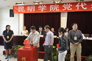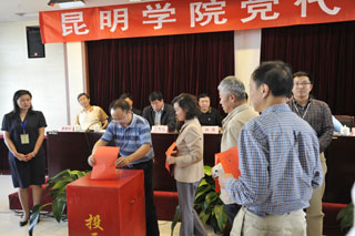 会议传达了市委组织部关于昆明学院出席市第十次党代会代表候选人的批复,通报了我校酝酿出席中共昆明市第十次代表大会代表候选人产生情况,介绍了4名候选人的简历。