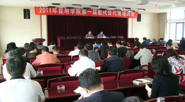 为进一步加强学校教代会工作,校工会于5月13日下午在行政楼502会议室组织召开了“2011年昆明学院第一届教代会代表培训会”,除当日上课和公差请假的代表以外,近80位教代会代表参加了培训会。会议由校工会副主席何俊同志主持。