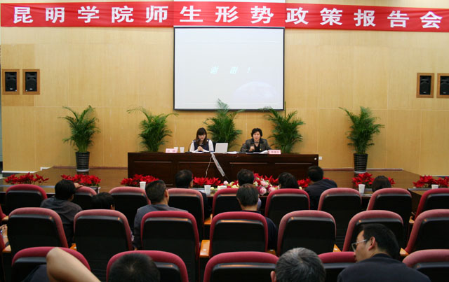 4月份,我校历时一个月的“昆明学院师生形势政策报告会”圆满结束。报告会采取点面结合、集中与分散的形式,以集中宣讲报告会和分散以班级为单位的形势政策课、党校课程,主题班会、团日活动相结合的渠道全面开展宣传教育活动。