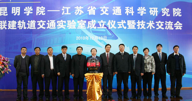 | 在昆明市委、市政府的重视支持下,昆明学院•江苏省交通科学研究院联建轨道交通实验室于12月13日在我院揭牌成立。这是云南省首个轨道交通实验室,实验室成立将为高质量、高水平建设昆明轨道交通提供保障。