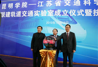 副市长周小棋、昆明学院党委书记梁晓谷、江苏省交通科学研究院董事长符冠华为实验室揭牌。