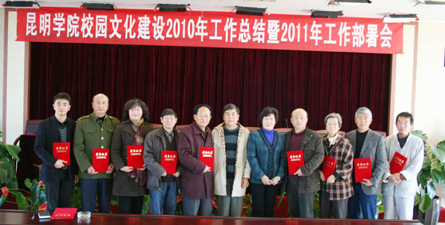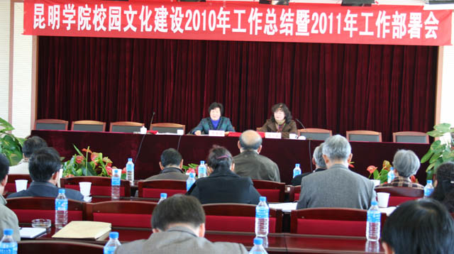李副书记还对昆明学院2011年校园文化建设工作进行部署。她要求各相关单位要积极思考、创新观念,做好下列几件事:一是整个校园和各个系(院)的物质文化建设;二是校风、学风、教风的提炼;三是师生文艺、体育活动及艺术团体、体育团体的组建;四是网络信息建设(如校园电子大屏幕、主要建筑大厅的电子显示屏安装,办公区、学生宿舍有线电视安装,校园网站改版等工作);五是深入开展各种学术、文化讲坛及其视频录制挂校园网;六是校园文化识别系统的设计、开发应用;七是规范校园制度文化建设;八是继续开展校园精神文明建设活动。
