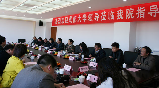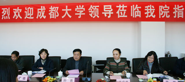 12月20日下午,成都大学柯玲副校长率该校学工部、团委及5个院系党总支负责人一行11人到我院就学风建设、思想政治教育、助学贷款、班级建设、辅导员队伍建设等进行访问交流,我院孙勇副书记带领党办、组织部、学生处、团委及初教系、经济系、城建系、音乐系党总支负责人给予了热情接待。