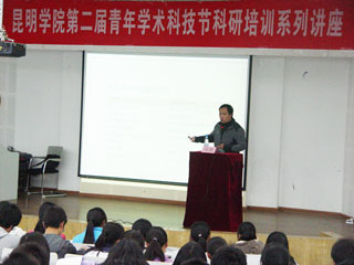 青年科研培训系列讲座是昆明学院第二届青年学术科技节系列活动之一,旨在让学生认识和了解做科研工作的思路,引导学生思考科学命题,教会学生调查研究、查阅文献、分析论证、制定方案、设计或试验、分析总结等科研方法,培养学生的科研素养和科研能力,促进学生体验和感悟科学研究的精神及作风,从而通过实践去接触学科发展的前沿领域和科技发展动态。