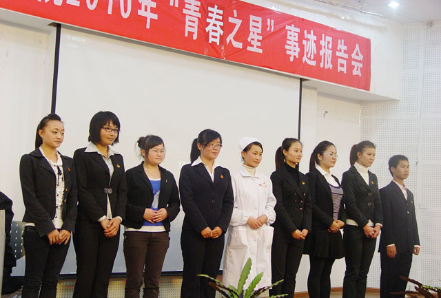 为鼓励和促进青年学生成长成才,紧紧围绕学院提出的培养应用型人才的要求,学院团委今年从全院推选申报的25名“青春之星”候选人中,评选出了2009——2010年度昆明学院“青春之星”。本学期为配合学院内涵建设和创先争优工作,进一步倡导先进、树立典型,促进优良学风建设,院团委决定举办2010年“青春之星”事迹报告会。