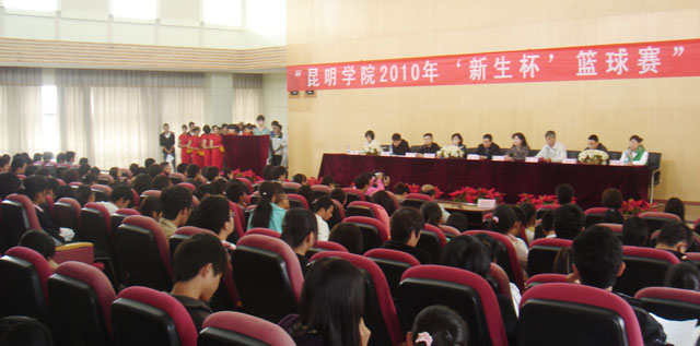 由院团委、学生会主办的昆明学院2010年“新生杯”篮球赛闭幕式暨颁奖仪式于10月25日中午在惟行楼1501报告厅隆重举行。学院党委副书记孙勇、机关党总支书记梁艳萍、党委宣传部部长张立新、学生处副处长罗进、体育系主任赵平、团委书记何昊宸、团委副书记王海艳、钱海鼎、各系团总支书记以及各系学生代表参加了本次闭幕式。