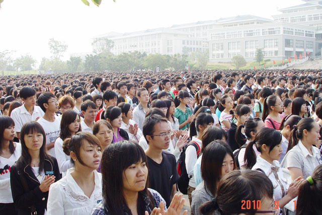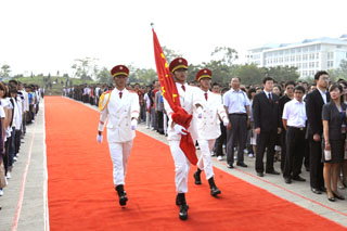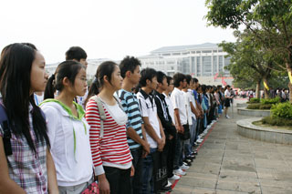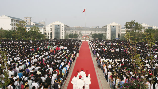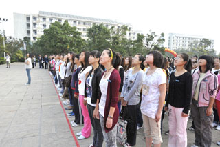 | 金菊含笑、硕果飘香,国旗高扬、师生欢庆。9月1日清新的早晨,我院15000余名师生第一次站在新校园聂耳广场国旗杆下,举行庄严的升国旗仪式。