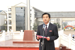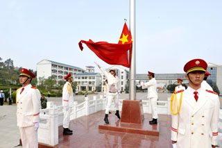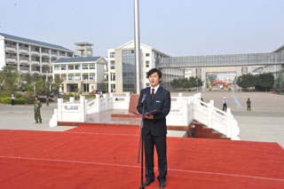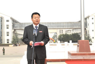 学院党委书记梁晓谷在升旗仪式上作了重要讲话。梁书记饱含深情地回顾了学院艰辛的办学历史,展望了学院的美好未来,表达了全院师生对祖国的热爱、对教育事业发展的企盼,并对广大师生提出了殷切希望。他说:昆明学院作为本科院校,建院时间不长;但追溯办学历史,最早可到1905年云南省高等学堂师范部。寻着历史的脉络,我们可以感受到昆明学院源远流长的历史、兼容并蓄的文化和坚忍不拔的精神。在我们的百年办学中,培养了许多优秀杰出的人才。百年办学赋予学院深厚的历史和文化内涵,聂耳等杰出校友激励我们开拓进取、自强自立的奋斗精神!回首过去,在十分艰难的办学环境和艰苦的办学条件下,全院师生员工自强自立、坚忍不拔,取得了超常规、跨越式发展的累累硕果;展望未来,我们对建设“国内知名、省内一流”的本科大学充满信心!今天,集合在新校园高高飘扬的五星红旗下,我们深知为国家建设、为民族振兴肩负的历史责任。我相信,每一位教师都会忠诚党的教育事业,教书育人,为人师表;每一位同学都会树立报效祖国的远大理想,勤勉自励,刻苦学习。面对学院内涵建设这一长期而艰巨的任务,让我们自觉遵循“明德至善,知行利物”的校训,坚定信念,追求真理,修德治学,勤于实践,为昆明学院的建设发展而发奋努力,不负我们在庄严国旗下的神圣誓言!
