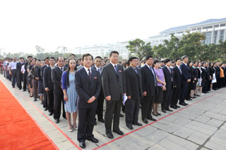 面对鲜艳的五星红旗冉冉升起,庄严雄壮的中华人民共和国国歌声响彻新校园每个角落。此时爱国激情澎湃在广大师生胸间,爱校情怀激荡在昆院人心田。昆院人为伟大祖国的繁荣富强进步而倍感自豪,为昆明学院的欣欣向荣而昂扬振奋!