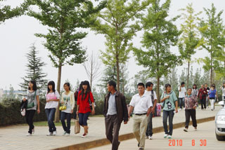 8月30日是昆明学院各院系2007、2008、2009级本专科学生在新校园正式上课的第一天。一大早,住在润泽苑、澄明苑的各院系学生纷纷赶往上课地点,院领导、教务处、保卫处、宣传部等相关职能部门的领导、干部及各院系党政领导、辅导员、班主任也提早赶到各楼群入口,引导、招呼学生,维持秩序。各院系当日早上有课的老师也都提前赶到新校园,找到自己上课的教室,提前等候学生到课。