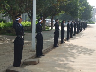 队员们服从命令、听从指挥、忠于职守,炎炎烈日下,汗水湿透了衣服,可没有一个队员喊苦叫累,圆满完成了校园交接和揭牌仪式的安全保卫执勤任务。