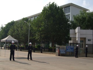 在昆明学院揭牌仪式上,由42名身着统一制式服装的校园保安队伍整齐列队西大门两侧,参加新校园首次重大活动的安全保卫执勤,并接受各级领导的检查。