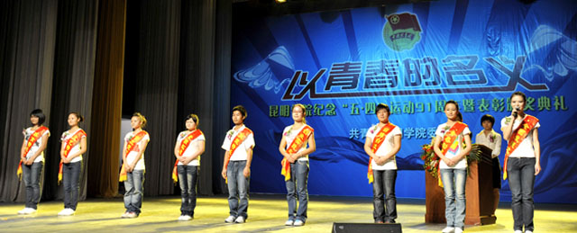 5月21日下午,昆明学院“以青春的名义”纪念“五•四”运动91周年暨表彰颁奖典礼在昆明市人民胜利堂隆重举行。