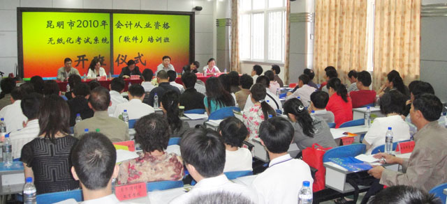 昆明学院与昆明市财政局合作,昆明学院经济系培训部承担了昆明市会计从业资格无纸化考试考点专业技术人员培训工作。5月6-7日,经济系培训部对昆明市区10个考点、昆明市所属的12个县区共100多名专业技术人员进行了考务工作的培训。此次培训为昆明市各考点抓紧做好无纸化考试的准备工作、宣传工作奠定了基础,培训工作圆满结业。 |