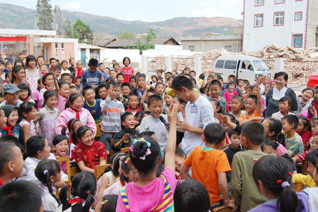 师生一套动感的幼儿健美操拉开了“心手相连、爱心捐助”活动的序幕。我系党总支书记刘宇红老师作了简短发言,表明这是昆明学院学前教育系全体师生心系灾区人民,参加或组织的第四次爱心捐赠活动,这样的活动还将继续开展。这次活动学前系系向桃园小学捐赠了水票和手风琴、脚踏风琴、体育器材等教学器具。之后,桃园小学张校长和小学生代表对昆明学院学前系师生给予的热心帮助表示感谢,小学生代表表示要好好学习,以优异的成绩回报祖国,回报那些爱他们的好心人!
