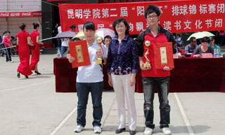 在昆明学院第二届“阳光杯”排球锦标赛中,经济系以优异成绩囊获了男子组及女子组冠军;分获男子组、女子组亚军的是初等教育系、旅游系;男子组、女子组季军分别为自动控制与机械工程系、计算机与网络技术系;体育系荣获贡献奖;美术与艺术设计系荣获体育道德风尚奖。