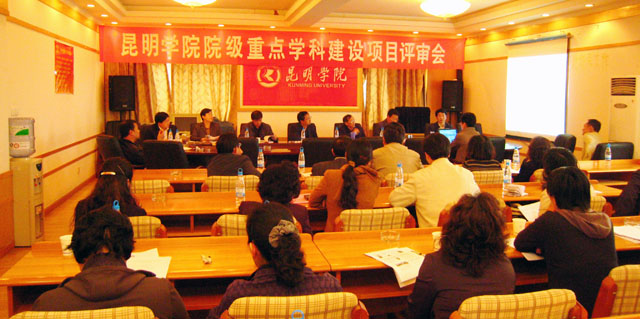4月26日下午,昆明学院第一批重点学科建设项目评审会在行政楼4楼会议室召开。会上对申报第一批院级重点学科的文艺学、应用数学、资源植物学、区域经济学、教师教育学、旅游管理、结构工程和资源动物学等8个学科进行了评审。