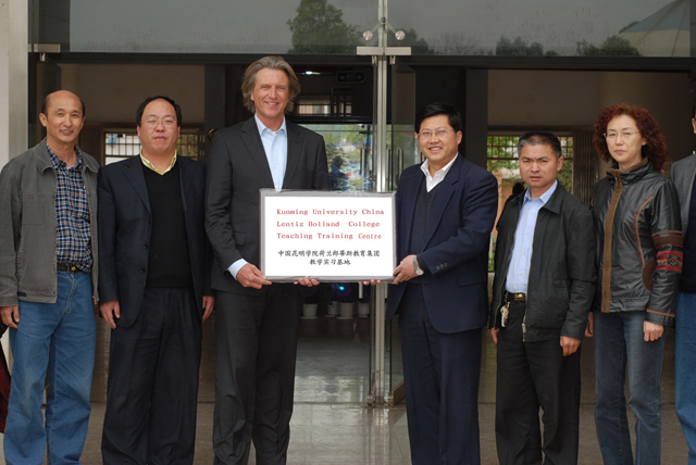 3月23日至26日,荷兰学院郎蒂斯教育集团国际项目经理范康普到昆明学院农学中专部进行访问,并与农学中专部负责人进行了亲切友好的交谈。双方就三年来的合作都表示满意,并就下一步开展合作进行了热烈认真的讨论,罗明东副院长对商谈的内容给予了指导。 根据双方的协议,3月25日中午罗副院长主持了“中国昆明学院—荷兰郎蒂斯教育集团教学实习基地”的揭牌和授牌仪式。农学中专部领导黄鹤平等参加了仪式。