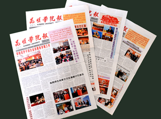 校报编辑部为及时有效地发挥校报宣传媒介功能作用,根据院党委要求,积极向有关上级主管部门申报《昆明学院报》出版发行工作。2008年10月,经云南省新闻出版局上报国家新闻出版总署正式批准,同意《昆明学院报》在沿用《昆明大学报》原有刊号的基础上,更名为《昆明学院报》,批准文号(新出综合[2008]1229号)。更名后的《昆明学院报》(国内统一刊号CN53-0813/G)作为昆明学院党委机关报,由原来的小4开4版月刊报纸,更改为大对开四版、一四版彩版、半月刊报纸,每期印数6000份。截止2010年3月中旬,《昆明学院报》已出版发行27期,面向全院各校区、省内外高校、有关上级领导机关和相关社会人士发行。