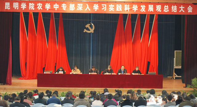 新闻背景:自2009年9月23日以来,农学中专部参加了第三批学习实践科学发展观活动。农学中专部党总支围绕“践行科学发展,提升教育教学质量,服务‘三农’这一主题,把进一步提高中等教育教学质量,快速融入昆明学院,为学院实现跨越式、超常规、追赶型发展做出贡献作为学习实践活动的目的。经过三个多月的学习实践活动,于2010年1月完成了各个阶段的各项任务,取得了预期的效果。