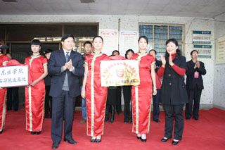 我院罗明东副院长与杨自兰书记共同为《昆明学院实习就业基地》、《盘龙区就业服务基地》揭牌。