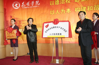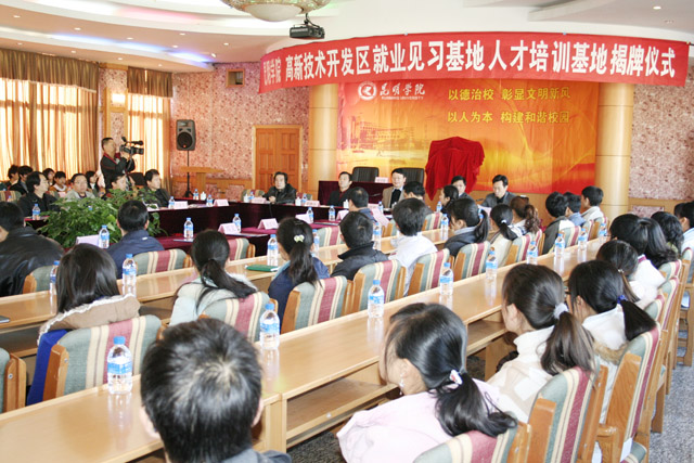 逯康麟副书记在讲话时说:“昆明高新技术产业开发区人才培训基地”的建立,为学校与企业搭建一个有利于职工开展高技能人才培训工作的平台。建立“昆明学院就业见习基地”,是通过输送各类专业应届毕业学生到高新区内各大企业实习、见习,实现校企对接,使学生能在就业前认识社会、感知企业、感受岗位,就业时可降低企业的人才培养成本。通过就业见习活动,一方面为企业提供了人才引进的渠道,另一方面为学校的毕业生提供了就业机会、解决了就业的问题,最终达到学校、企业、社会三赢的效果。