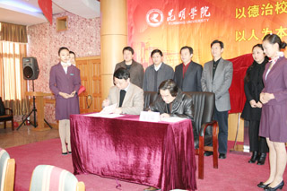 我院与昆明国家高新技术产业开发区建立“昆明学院就业见习基地”和“昆明国家高新技术产业开发区人才培训基地”,并于12月9日在我院人民西路校区举行合作协议签字和揭牌仪式。我院党委书记梁晓谷、院长陈世波,副院长罗明东、刘海发等领导和昆明国家高新技术产业开发区党工委副书记逯康麟、昆明市教育局党委副书记姚宏、云南省教育厅学生处处长卢明、云南省农业厅劳动力办公室主任陈勇等领导、嘉宾出席仪式。合作协议签字和揭牌仪式由我院副院长刘海发主持。