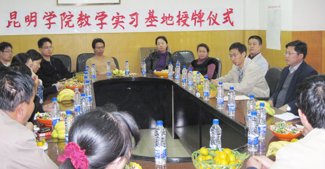 五华区教育局高红副局长对昆明学院在二十四中建立实习基地表示祝贺,同时表示支持昆明学院与五华区的学校建立教学实习基地。