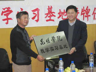罗副院长代表昆明学院在教学实习基地协议书上签字,将“昆明学院教学实习基地”牌正式授予昆明市第二十四中学,并对教学实习基地建设和管理作了重要讲话,他认为中学教学实习基地是昆明学院师范教育与基础教育的纽带和桥梁,希望计算机与网络技术系与二十四中保持经常联系,派一线教师到二十四去听课、上课、作学术讲座,了解中学教育的真实情况,同时请二十四中信息技术课教师到我校任课、开展教学研究或作学术讲座,指导计算机与网络技术系的教学教研工作,开展全方位多角度的交流与合作,发挥实习基地建设过程在教学改革及网络教学平台等方面的重要作用,突出培养学生“综合素质高、专业能力强、职业技能优”的基本规格,强调培养的人才要上手快、后劲足、适应性强,建一个集教学实习、教学研究和社会服务于一体的有特色的教学实习基地。