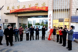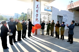 会后,陈院长先后向农学中专部、医学中专部的负责人授印章。学院党政领导和两个中专部负责人先后为两校区揭昆明学院牌匾。