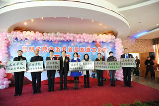11月27日下午14:30,“昆明学院旅游系首届旅游文化节开幕式”在人民西路校区三号教学楼六楼多功能厅隆重举行。参加此次开幕式的有昆明学院梁晓谷书记、陈世波院长、孙勇副书记、熊晶、罗明东、刘海发副院长以及我院部分职能部门的领导,省、市旅游局的领导、旅游界部分企事业单位的代表、部分兄弟院校代表应邀参加了会议,旅游系师生代表列席了会议。