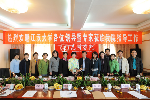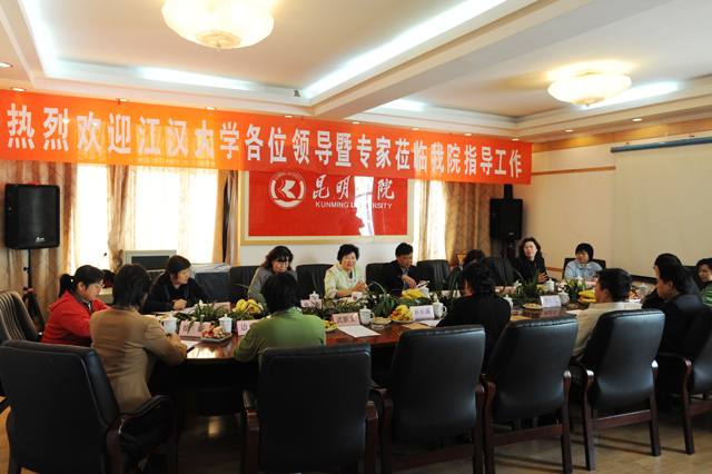 江汉大学此次到我院访问考察主要是对我院办学、改革建设发展、统战工作进行考察调研。我院在人民西路校区办公楼四楼大会议室举行了交流座谈会,会议由李副书记主持。李副书记首先对江汉大学考察团全体成员到访表示热烈欢迎,然后向对方介绍了我院基本情况及在地方经济社会发展的地位作用,同时介绍了我院统战工作经验成效及各民主党派基层组织建设情况。江汉大学聂书记介绍了江汉大学现阶段建设发展情况和学院统战工作经验成效,同时对昆明学院的办学成效和建设发展经验表示钦佩赞赏,对我院的热情接待表示感谢,建议今后两校多增进沟通合作交流。