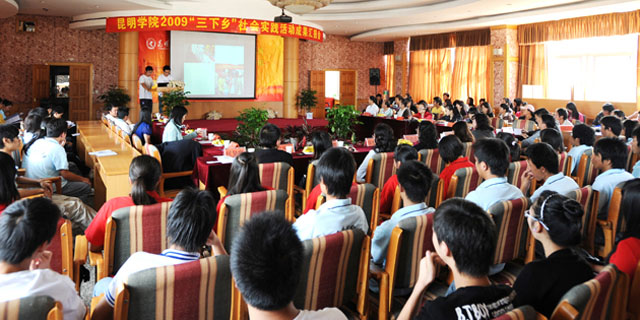 10月16日下午,院团委2009年“三下乡”社会实践活动成果汇报会在人民西路校区举行。团市委机关党总支书记王彦彦,团市委学校部部长栾丽华,学院党委宣传部张立新部长,教务处郝旭霞处长,机关党总支梁艳萍书记,保卫处方永昆副处长,学生处罗进副处长等出席了汇报会,会议由团委书记何昊宸主持。 我院本次“三下乡”根据党委宣传部、学生处、院团委联发的《关于开展昆明学院2009年大学生暑期社会实践活动的通知》的文件精神,于7月上旬正式启动,历时7天。活动以“高扬爱国主义旗帜、服务科学发展大业”为主题,本着“讲求实效、就进就便、针对性强、辐射面广、安全第一”的原则,按照“全面动员、普遍参与、点面结合、重点突破”的要求,以系为单位,结合本系专业特色,学院共组织了6支志愿服务队到昆明周边县市区基层农村开展社会实践与志愿服务活动。 汇报会上,来自自机系、旅游系、生科系、经济系、计网系、政法系的老师和学生代表,分别对此次“三下乡”社会实践活动作了汇报与成果展示。各汇报系结合系部的专业特色,开展的实践活动形式多样、成果丰富,能够用理论指导实践,用调研成果服务农村、服务社会、服务昆明的实践活动。 党委宣传部部长张立新代表学院活动领导小组讲话肯定:6个系的汇报都反映出了此次社会实践主题突出,准备充分,各系领导和相关老师高度重视,积极支持,责任心强,有的亲自带领学生到农村指导调研服务;各系结合专业特长开展科学发展观政策、普法、科普、环保宣传,进行家电维修、爱心捐赠、社会调研、参观访问、劳动体验、文体活动等,既充分认识社会和乡情,也找正自己的角色位置,以我所能服务社会,为今后发展积累经验,为学院服务地方经济发展,锻炼培养了师生干部,宣传展示了学院办学实力和育人水平,与地方建立良好合作关系,做出实绩。衷心感谢团市委领导和相关处室领导的关心支持,衷心感谢6支小分队的系领导、老师、同学的艰苦努力和辛勤奉献。 会上,团市委机关党总支书记王彦彦作了重要讲话。王书记对我院的“三下乡”社会实践工作给予了充分肯定,她指出,我院的“三下乡”社会实践活动准备充分、成果丰富,特别是通过这次活动让同学们了解了社情民意,倾听到了基层人民群众的心声,找到了奋斗和努力的方向,确实增强大学生服务社会、报效祖国责任感和使命感,发现问题、分析问题、并解决问题的能力得到了进一步的提高,砥砺了品格、磨练了意志、收获了真知、陶冶了情操、树立了理想。这次社会实践活动既是一次同学们了解社会、服务社会的尝试,更是一次理论与实践相结合的马克思主义的第二课堂。 此次“三下乡”社会实践活动是学院团委认真学习贯彻十七大精神,深入开展学习实践的科学发展观活动的重要举措,也是加强和改进大学生思想政治教育、帮助大学生在实践中深刻理解科学发展观重大意义、发挥大学生人才智力优势、服务新农村建设的有效途径。相信此次活动的开展,将为大学生体验农村、融入社会搭建平台,为我院团学工作的不断推进和现代新昆明建设贡献力量。