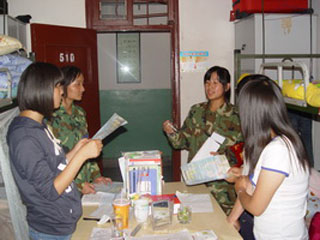 保卫处针对2009级新生校园安全常识缺乏,结合当前校园治安形势的新特点,在新同学入校后,除了到各系开展新生入学安全教育,还组织校卫队员和学生治安服务队安全宣传小分队队员走进新生宿舍,把校园安全常识带给新同学。