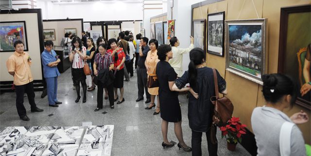 刘海发副院长在开幕式上宣布了本次参展作品获奖名单。本次评审按绘画、书法、摄影、艺术设计四种作品类别进行,共评审出专业与非专业教职工作品一等奖9个(其中并列奖1个),二等奖20个,三等奖24个,鼓励奖18个,共有71人次获奖。陈院长等与会领导和嘉宾为获奖作者代表颁发证书,并为开幕式剪彩。   获奖作者代表武新文老师发言时说,笔墨当随时代,作品表达了我院教职工对党和人民的深厚情感,对祖国壮丽山河的无比热爱,体现与时俱进,关注社会,共建和谐,奋发进取,提升艺术作品内涵的良好精神,展示了我院高扬人文精神,弘扬民族文化的艺术品格,是构建和谐校园,宣传学院,增进相互了解,营造良好学术氛围的有益之举。相信在学院党政的领导下,我们将克服一切困难,锐意进取,争取新的更大的胜利,我们的明天更加美好。   值得肯定的是,许多教职工以实际行动积极热情支持学院举办本次展览, 210多件参展作品,都是昆明学院教师、行政管理人员、后勤职工和离退休同志的创作。绘画作品涵盖了中国画、油画、版画、水彩画、水粉画,书法作品有草书、隶书、篆书,摄影作品包括风景、人物,艺术设计包括平面设计、装饰绘画、工艺制作和陶艺等。这些作品,不仅数量较多,种类齐全,而且不管是专业组还是非专业组,都具有较好的思想性和艺术性,体现了昆明学院广大教职工爱党爱国、爱乡爱校的真挚感情和对真善美的执着追求,反映了广大教职工朝气蓬勃、健康向上、奋发有为的精神风貌与多种才艺。