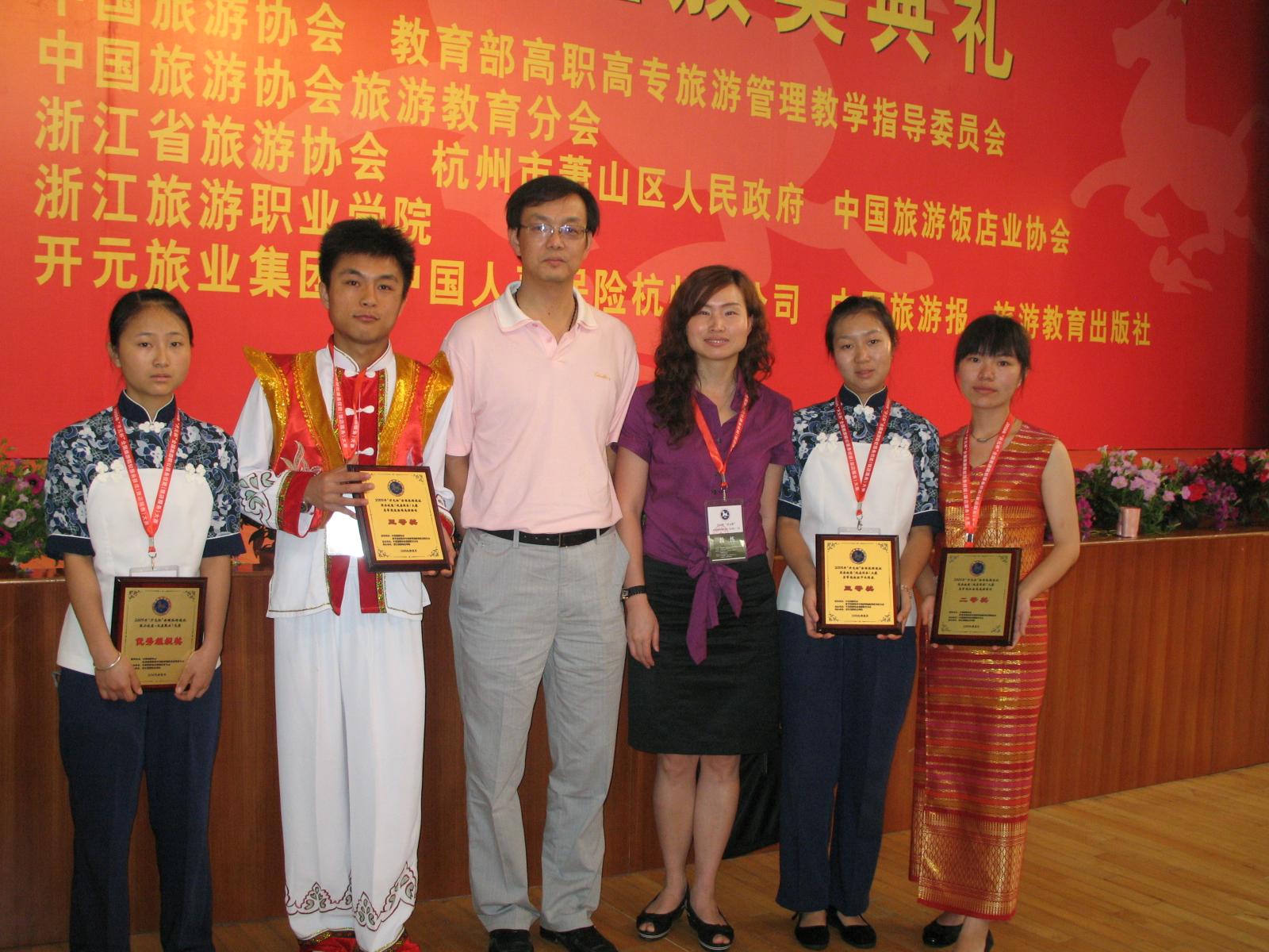 本次大赛是我国旅游教育迄今为止规模最大、项目最多、覆盖面最广、规格最高的一次技能大赛,共有来自全国24个省市,134支代表队,1190名选手参加了角逐。为了参加此次大赛,我院领导高度重视,赛前进行了总体安排和动员。学院罗明东副院长、教务处郝旭霞处长以及旅游系窦志萍主任、杨璐书记亲临训练现场指导,给予了选手极大的支持和勉励。旅游系经过周密部署和精心组织,组成了以骨干教师田芙蓉和刘红为教练,李鹏和唐忠明为专业英语辅导老师、4名学生为参赛选手的代表队,进行了为期一个月的赛前紧张训练,在有上海师范大学、华侨大学、北京联合大学、桂林旅游高等专科学校等强校参赛的情况下,我校4名选手全数获奖,为我院赢得了荣誉。