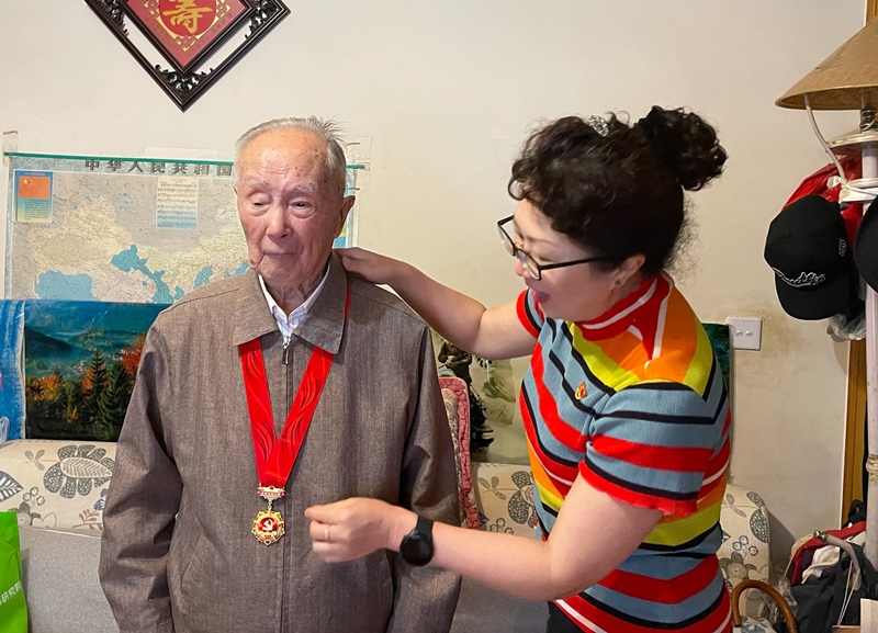 6月30日,离退休教职工党委上门对高龄、行动不便的老党员颁发纪念章。