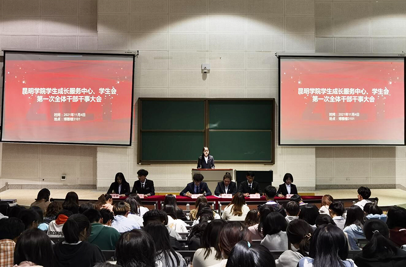 11月5日,昆明学院校团委学生成长服务中心、昆明学院学生会第一次全体干部干事培训交流会在博雅楼3101教室成功召开。昆明学院第五届学生会全体工作人员及第五届学生成长服务中心全体成员参加会议。