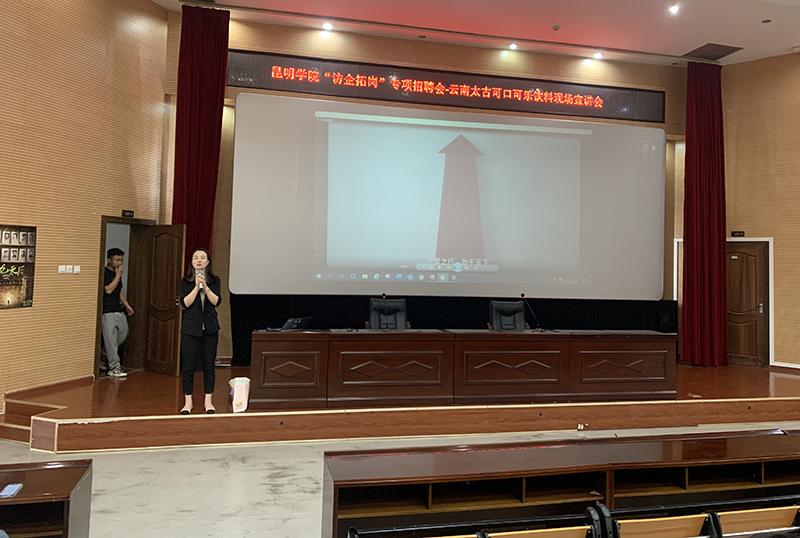 为贯彻党中央和国务院“稳就业”、“保就业”决策部署,继续巩固校领导“访企拓岗”专项行动工作成效,5月26日下午,招就处就业指导中心在图书馆二楼报告厅举行昆明学院“访企拓岗促就业”——云南太古可口可乐饮料有限公司专场招聘宣讲会。